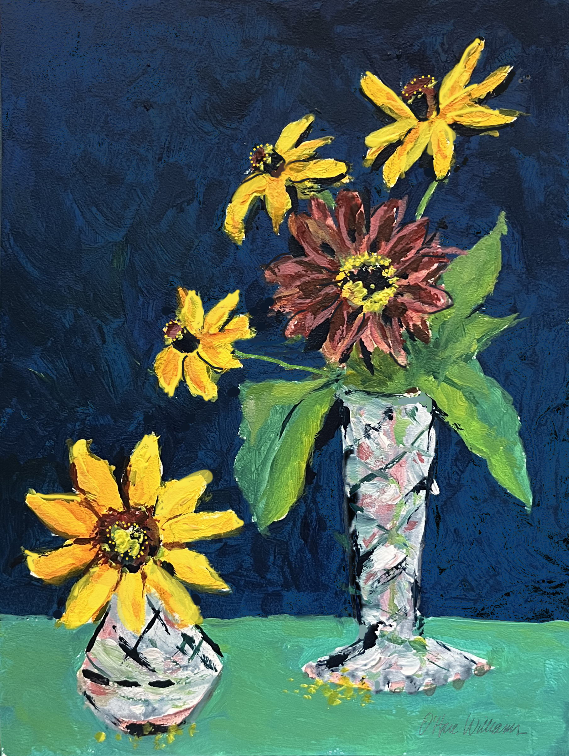Patricia O’Hare Williams is an artist known for her vibrant still lifes and evocative landscapes. Her work is characterized by lively colors, intricate details that exude personality, and clean, graphic lines. Working primarily in watercolor and acrylic, O’Hare Williams captures the essence of familiar scenes with a touch of nostalgia, imbuing them with character and an unexpected perspective. Her paintings are part of several private collections, and her collaborative projects with fellow artists are proudly displayed at the Marblehead Veterans Middle School and Tufts–New England Medical Center, Boston, MA.