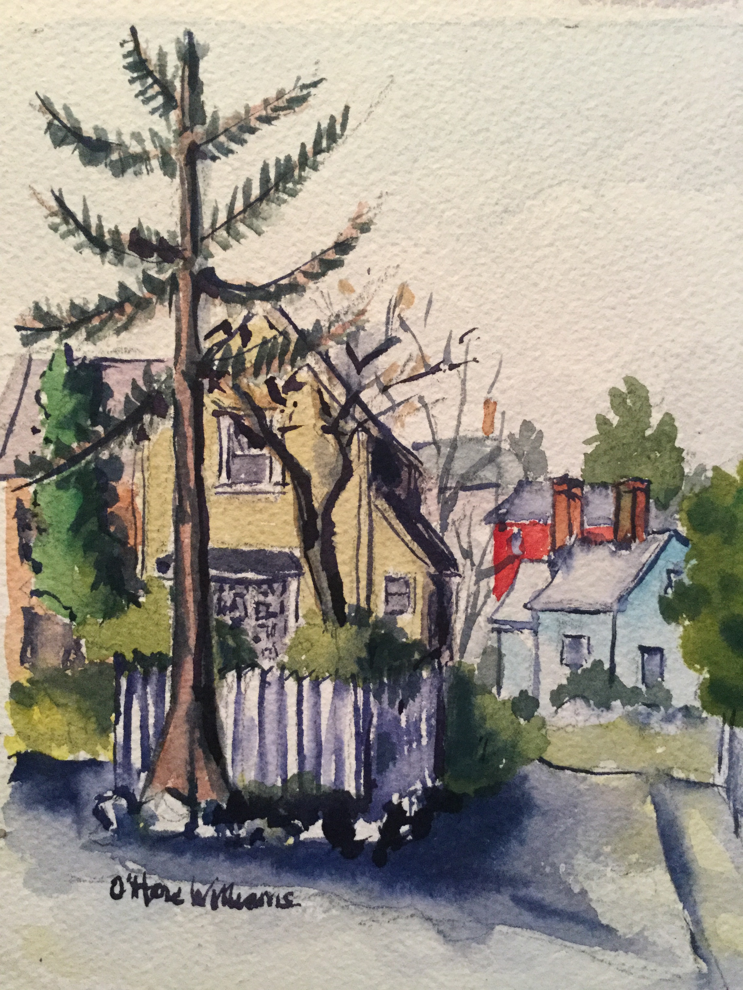 Previous Image Next Image ca1d6d96-3bf6-49de-abb4-5b6377adebff Summer Street, 7″x5″ watercolor, available $150.00