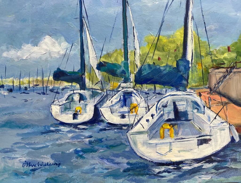 3 J/70 Racing Boats, acrylic, 12″ x 16″